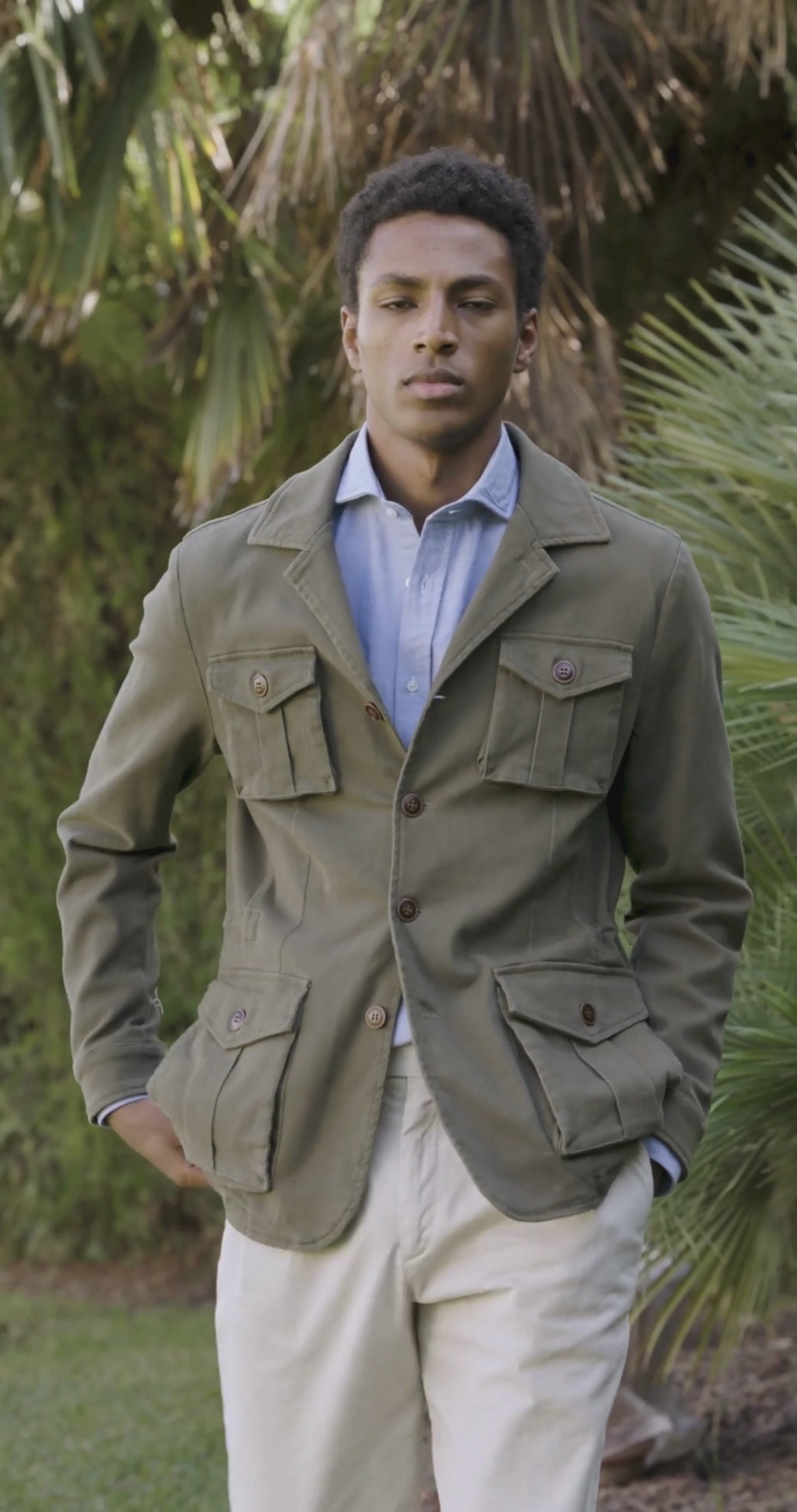 "La sahariana que se mueve contigo: elegancia utilitaria con comodidad moderna"